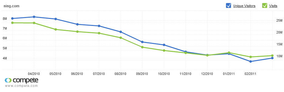 I don’t doubt Mr. Rosenthal when he says Ning’s revenue for the year will be up about 400%. That business is likely coming from the larger brands and media companies that use Ning. And, at the end of the day, it’s revenue — not traffic — that makes or breaks a business. So in that regard, Ning’s decision worked out well.